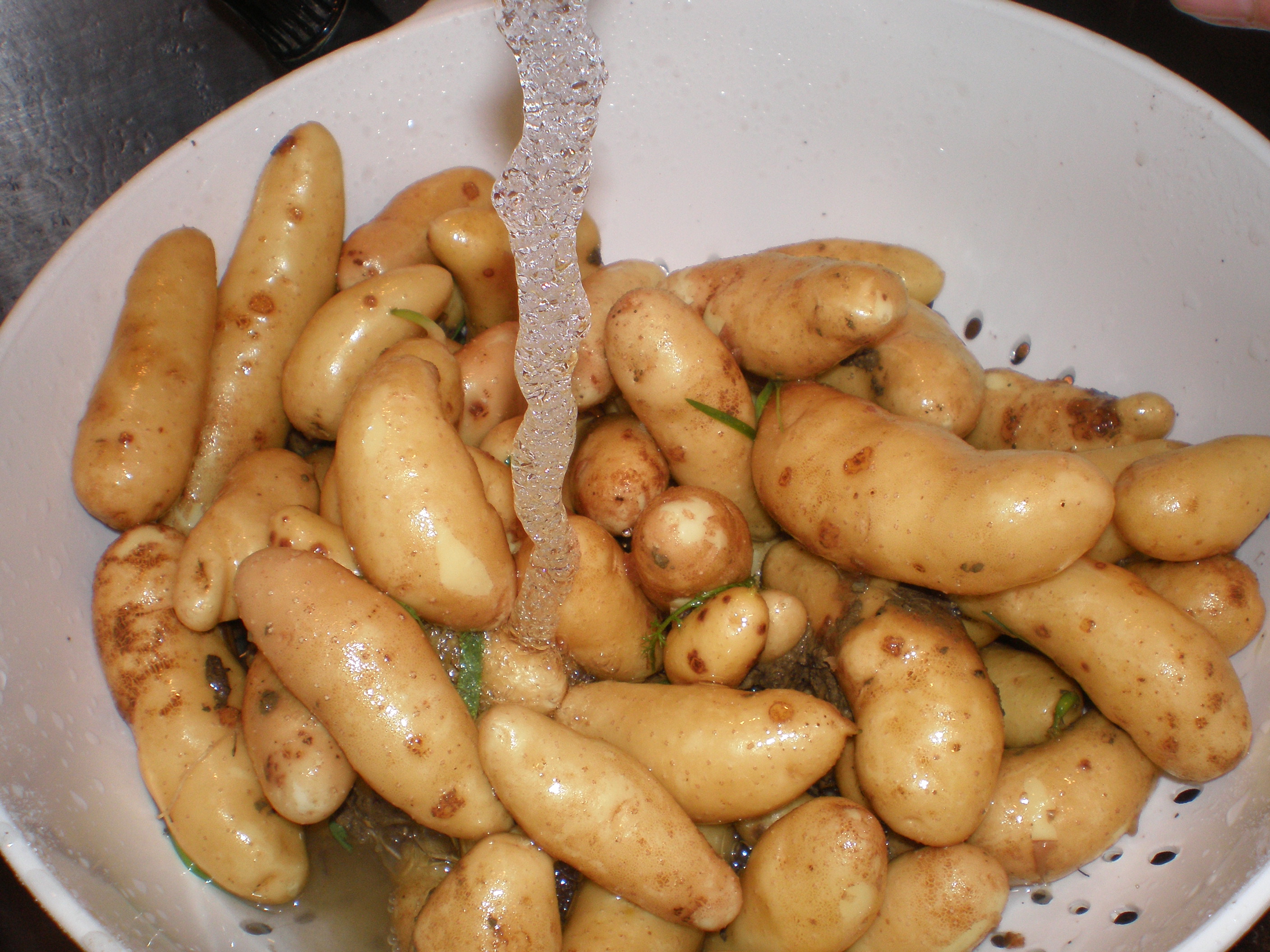 Nous nous régalerons de pommes de terre nouvelles et ce jusqu’à la fin de la saison, Pas de n’importe quelle pomme de terre, mais de la ratte. Variété au subtil goût de noisette. Bouillie, puis rôtie, assaisonnée de fines herbes du jardin et d’un filet d’huile d’olive ou tout simplement nature, elle fait le bonheur de nos palais.
